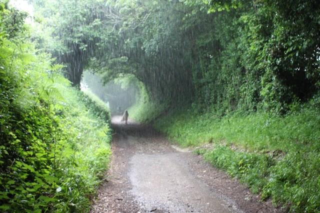 We first visited in 2016 when the leaves were falling, and again in May 2017, when we got caught in an unexpected downpour. The below photo is my daughter wearing a scarf to cover herself while dancing in it